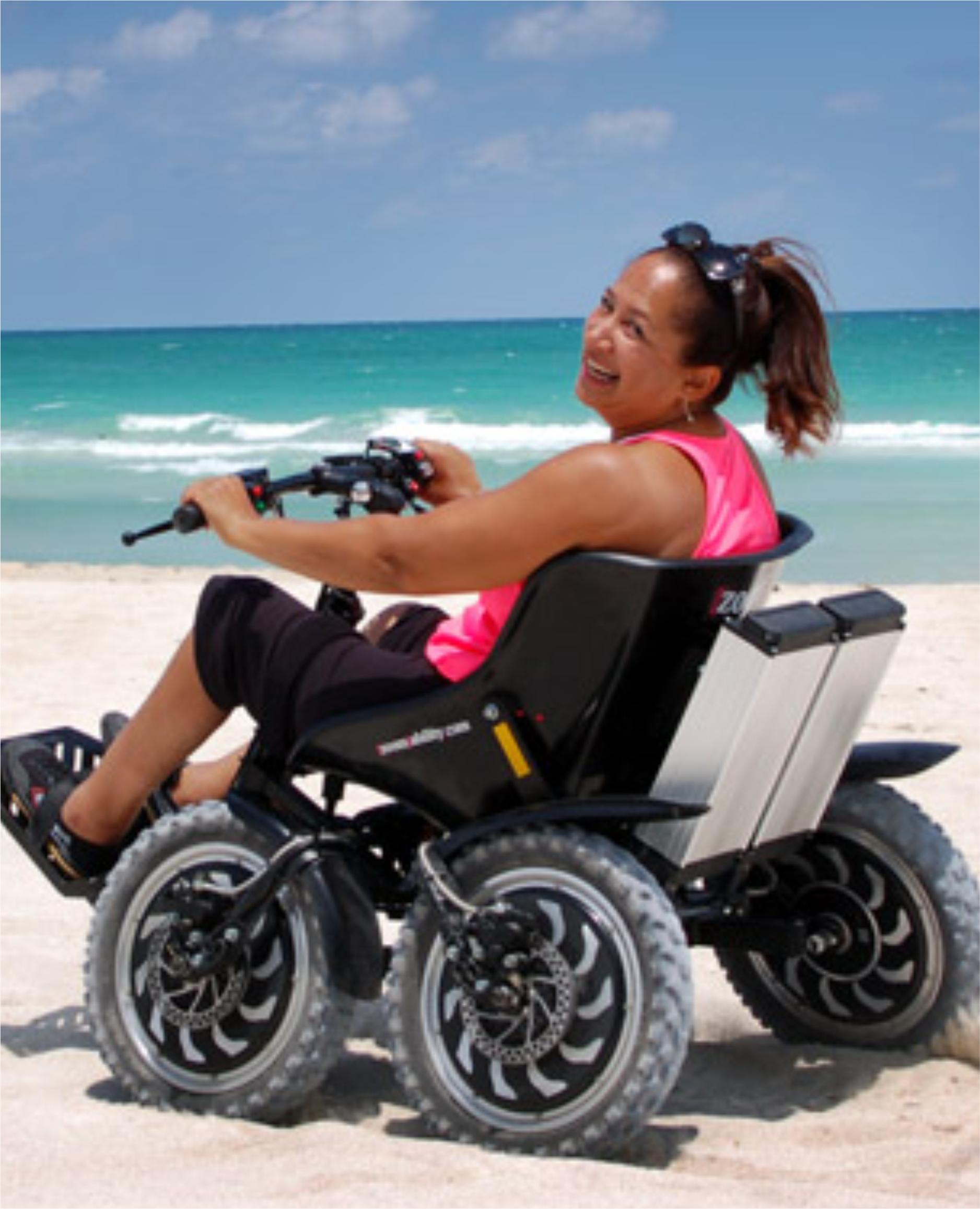 Zoom Uphill stands out for its permanent symmetrical 4-wheel drive system, ensuring optimal traction and stability on rough terrain. Its patented frame design guarantees that all four wheels remain in contact with the ground, providing consistent performance across various surfaces.